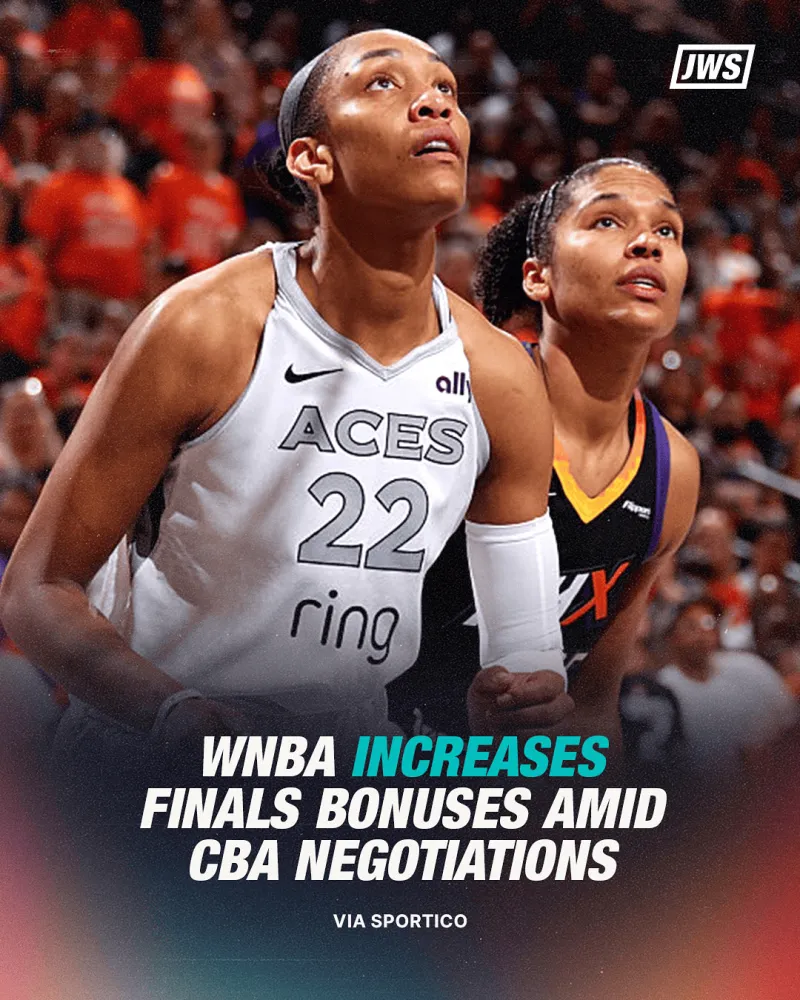 美媒文报道:2025年WNBA总冠军队每位成员将获得22908美元奖金,而2020年的冠军奖金为每位球员11356美元。