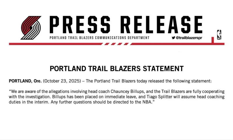 虎扑10月24日讯 开拓者官方在今日早些时候发出公告,助教蒂亚戈-斯普利特暂任球队主帅一职,对于比卢普斯涉嫌非法赌博事件暂不再回应更多问题。