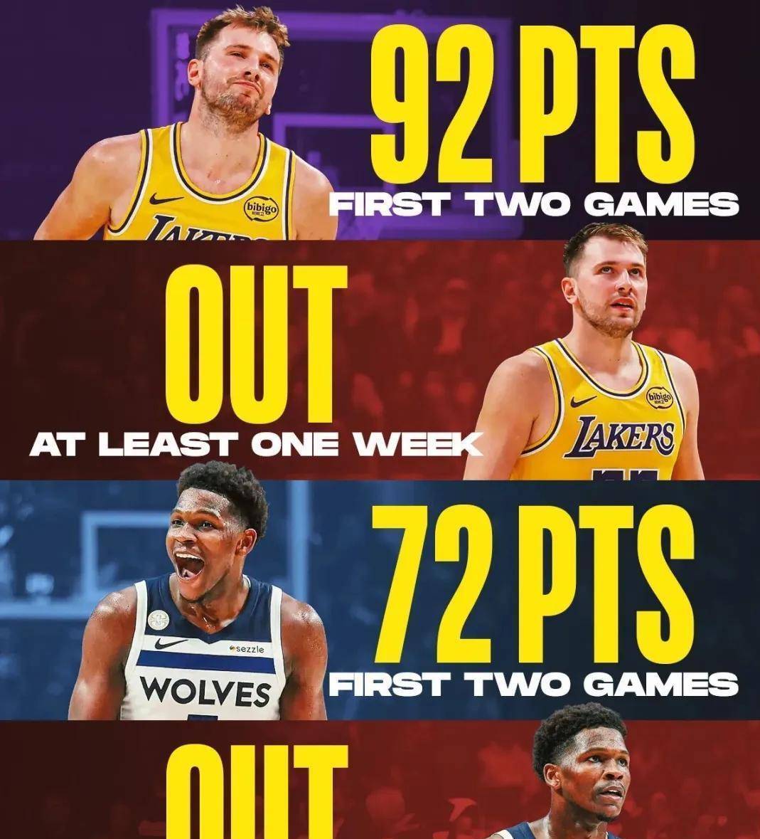 东契奇蹲在场边绑绷带的样子像在拆炸弹。左手手指扭伤加小腿挫伤,要他至少休息一周。而这之前他正打出场均46分11.5篮板的恐怖数据,独行侠的进攻体系瞬间塌了半边天。
