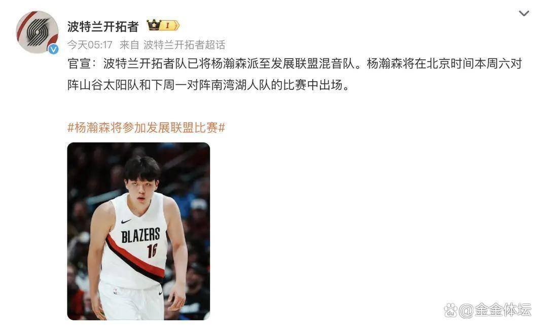 球队正在连续客场征战,让杨瀚森随发展联盟混音队比赛,远比坐在NBA板凳末端看球更有价值。