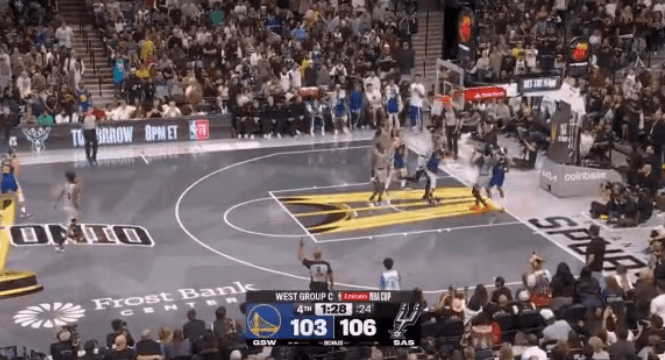 比赛还剩下1分28秒时,勇士发动进攻,库里外线投篮不中,双方在抢板过程中球出界。裁判报告指出福克斯在篮下抢篮板时从后面推了巴特勒一把,应该吹罚福克斯抢篮板犯规。至于库里最后突破造杀伤那个球,裁判认为福克斯侵犯了库里正常的行进路线并且发生了明显的身体接触,吹罚犯规是没有问题的。