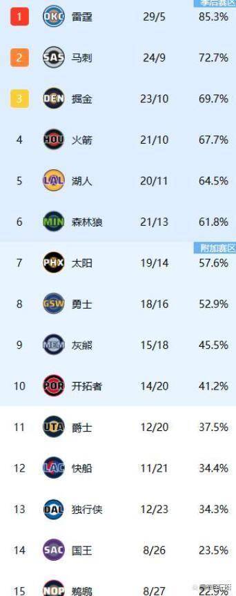 西部的排名榜,每一天都在跳动。 雷霆、马刺、掘金、火箭、湖人、森林狼,这前六名的阵营暂时稳固,但身后的追赶者已经杀红了眼。 菲尼克斯太阳、金州勇士这些传统豪强,正在7-10名的附加赛区域厮杀,丝毫不敢放松。 而原本被认为已经退出竞争的洛杉矶快船,就像一把突然烧起来的野火,从第12名的位置,带着6连胜的炽热势头,猛踹着季后赛的大门。 他们或许暂时还追不上前面的火箭,但他们的每一场胜利,都在让西部的竞争版图变得更加混乱和不可预测。 至于独行侠,他们站在命运的十字路口,关于安东尼-戴维斯的去留,将在未来一个月内,给出最终的答案。