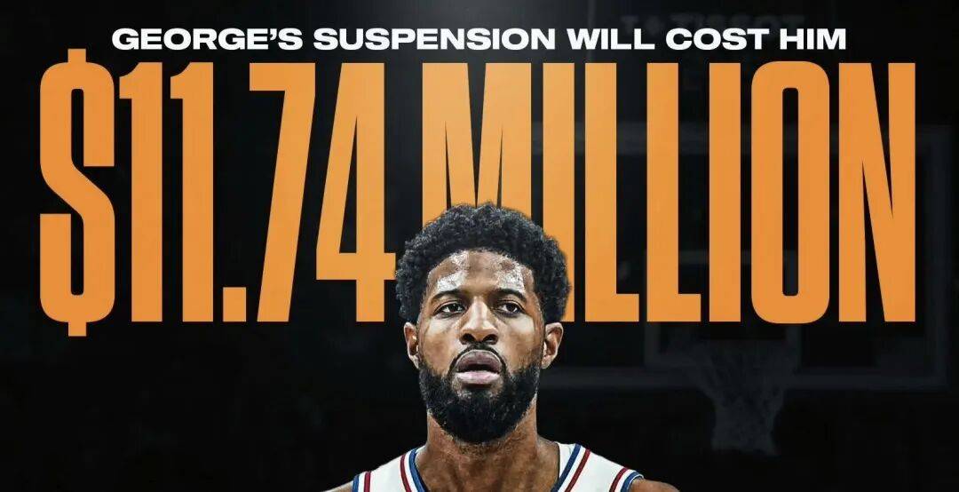 在25场禁赛里,乔治将无法领到薪水,根据本赛季他5116万美元的薪水来计算,超过20场或以上禁赛,每场减付110分之一。