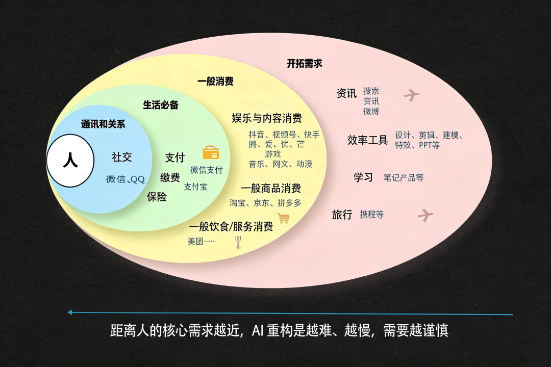 工具层AI可以通过补贴和流量快速放大,但留量能力有限;而关系层AI是慢变量工程,它考验模型的上下文理解能力、场景适配能力,更考验产品的“克制与耐心”——在社交场景中,AI不能喧宾夺主;在服务场景中,AI不能过度干预。但关系层的AI一旦落地,将形成最稳固的用户黏性:当AI成为社交、生活、创作中的一部分,其存在将不再依赖补贴,而是在日常互动中自然沉淀,从“工具”变成“伙伴”,从“效率”走向“信任”。